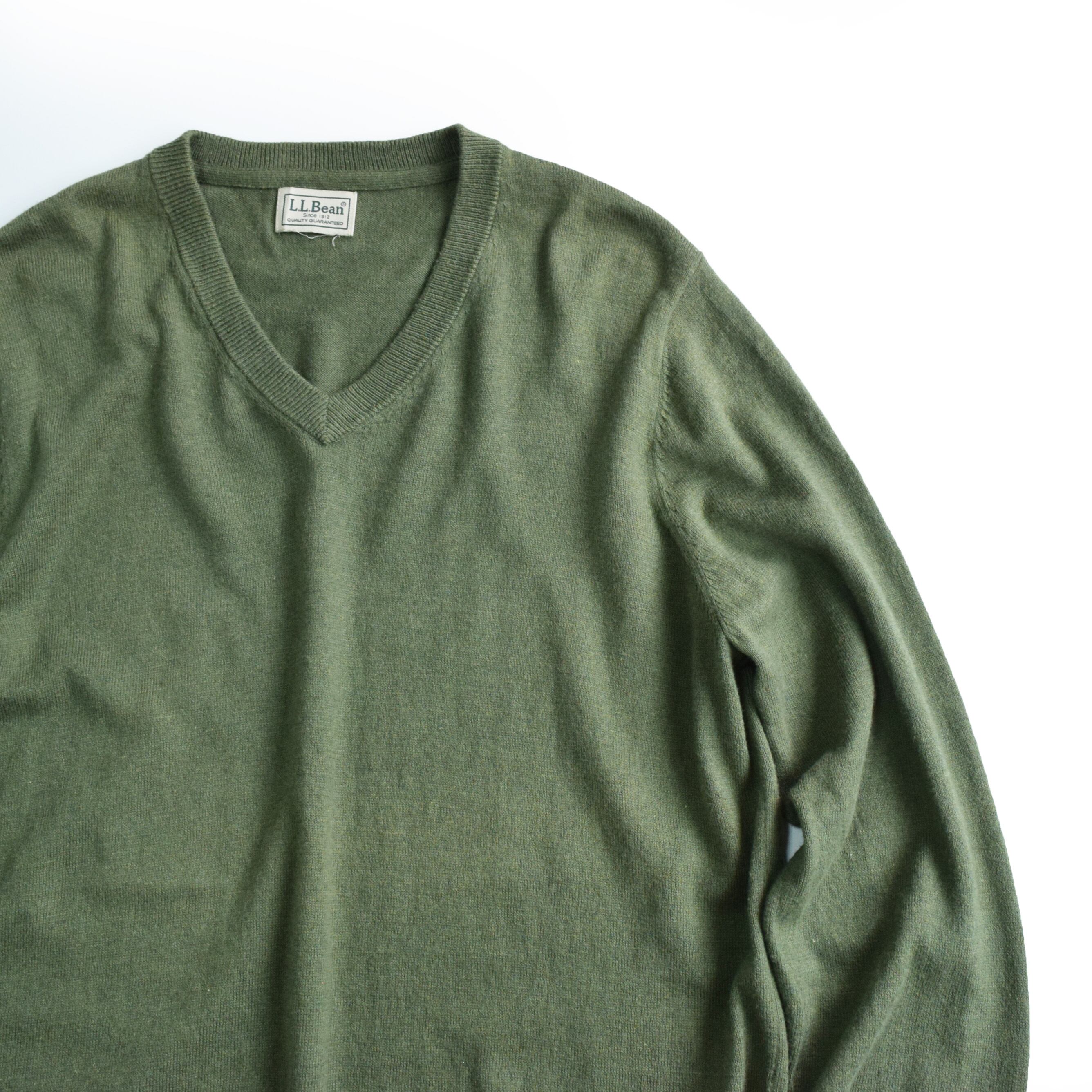 00s " L.L.Bean " cotton × cashmere V-neck knit sweater . MD0038