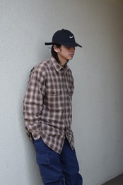 オンブレチェックパターンのコットンシャツ。