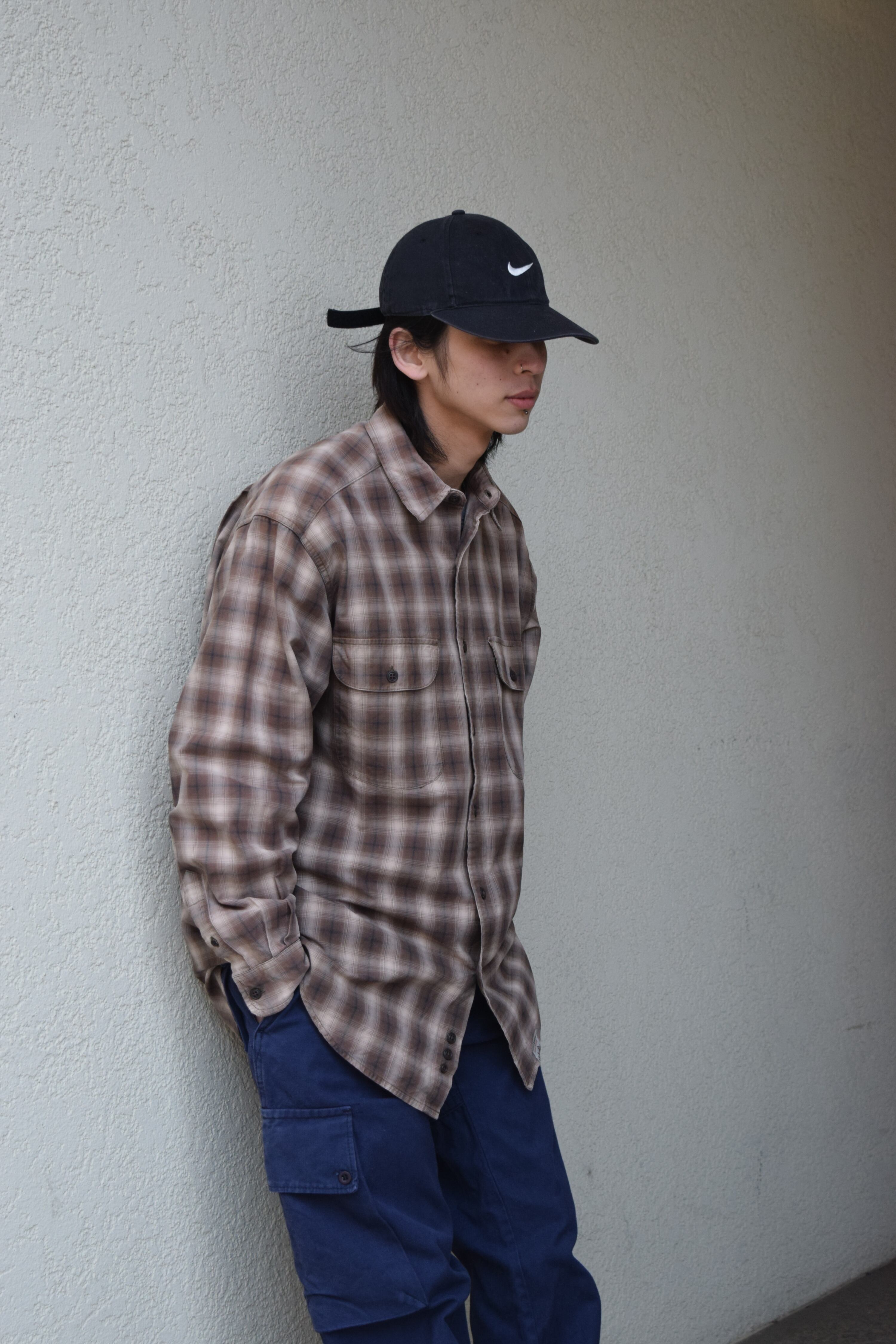 90s " eddie bauer " ombre check pattern cotton L/s shirts